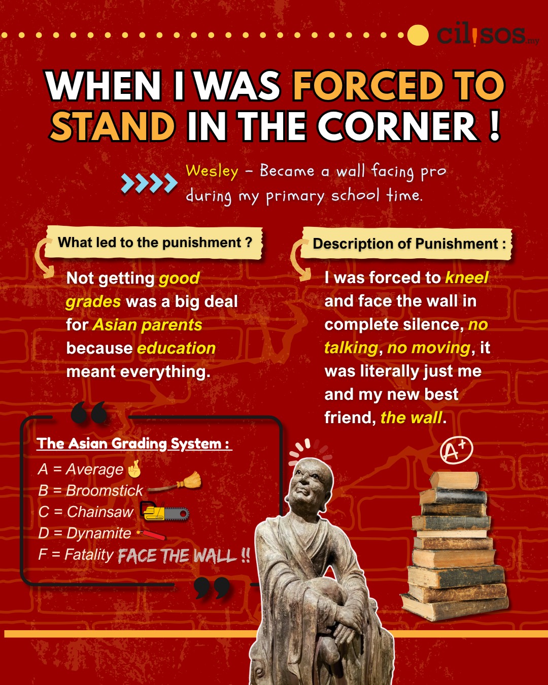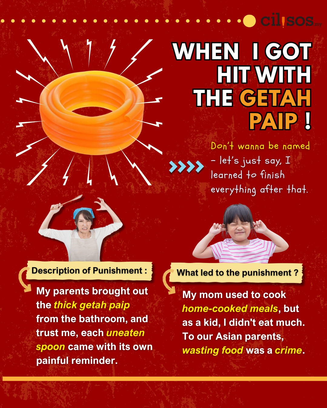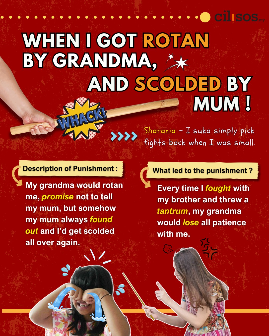 [INFOGRAPHIC] Punishments we pernah kena that we still remember today! 30/07/2025 CILISOS Culture, Infographics Share this article:2Shares Facebook Twitter LinkedIn Email WhatsApp2 Our Cilisos team shares their weirdest punishments they’ve ever received from their parents. #NationalParentsDay Prev 1of7 Next Share this article:2Shares Facebook Twitter LinkedIn Email WhatsApp2NAH, BACA:Why is there not a single Tamil secondary school in Malaysia?