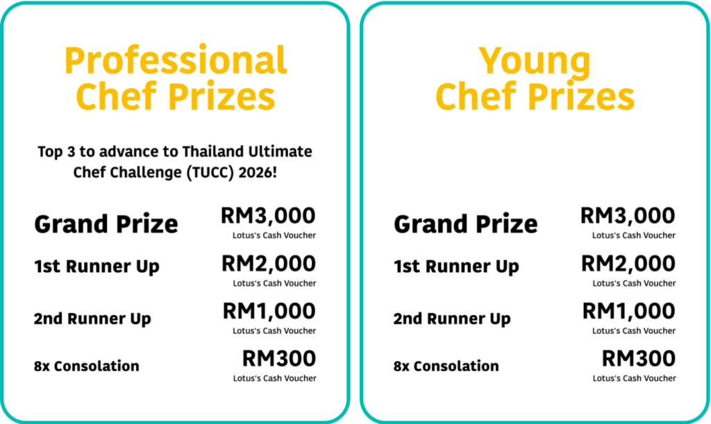 So, what’s at stake in this competition? Besides earning bragging rights, winners will take home RM3,000 worth of Lotus’s vouchers! Meanwhile, the top 3 winners from the Professional category will also receive the honour of representing Malaysia at the Thailand Ultimate Chef Challenge (TUCC) in Bangkok. You’ll also get recognition from some of the country’s most respected culinary legends, a serious flex for any chef’s résumé.