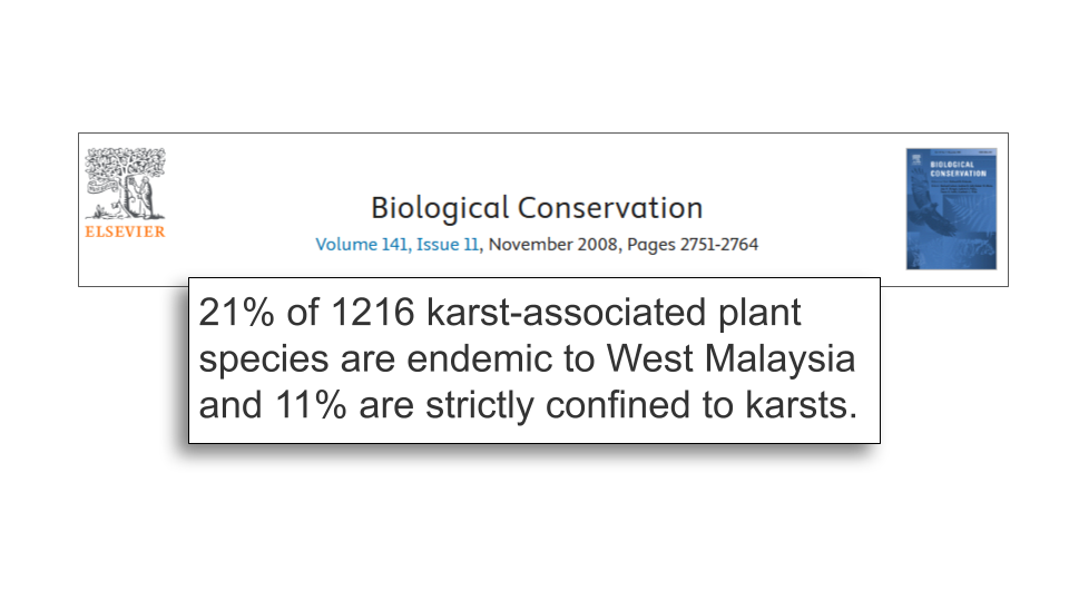 And it’s not just snails. One study found that out of over 1,200 plant species growing in limestone environments, 21% are endemic to Peninsular Malaysia, and another 11% are strictly confined to limestone habitats.